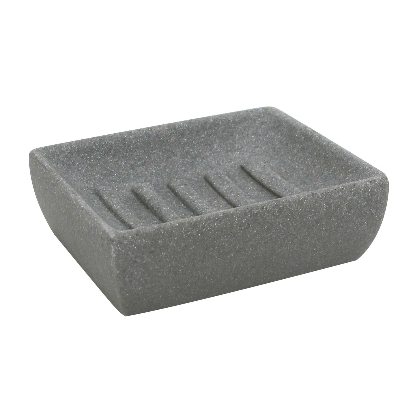 - Soap Dish: Made of 60% Resin, 40% Sandstone, 4.38" x 3.50" x 1.38". Holds a standard size bar of soap